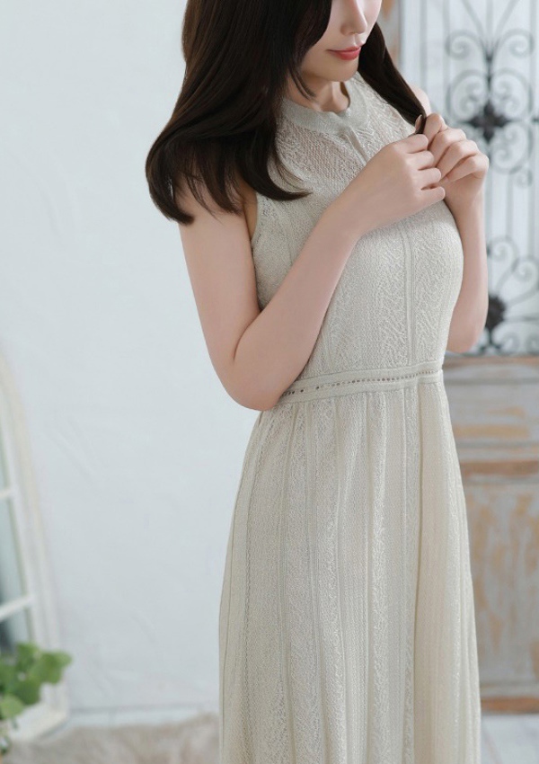 落ち着いた物腰に清楚な空気が重なり、彼女の佇まいはまるで静かな湖面のよう。